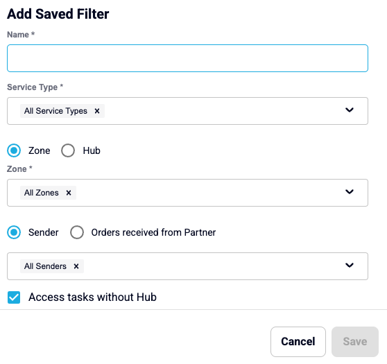 | Access tasks without hub | Tick if the order does not require hub routing |