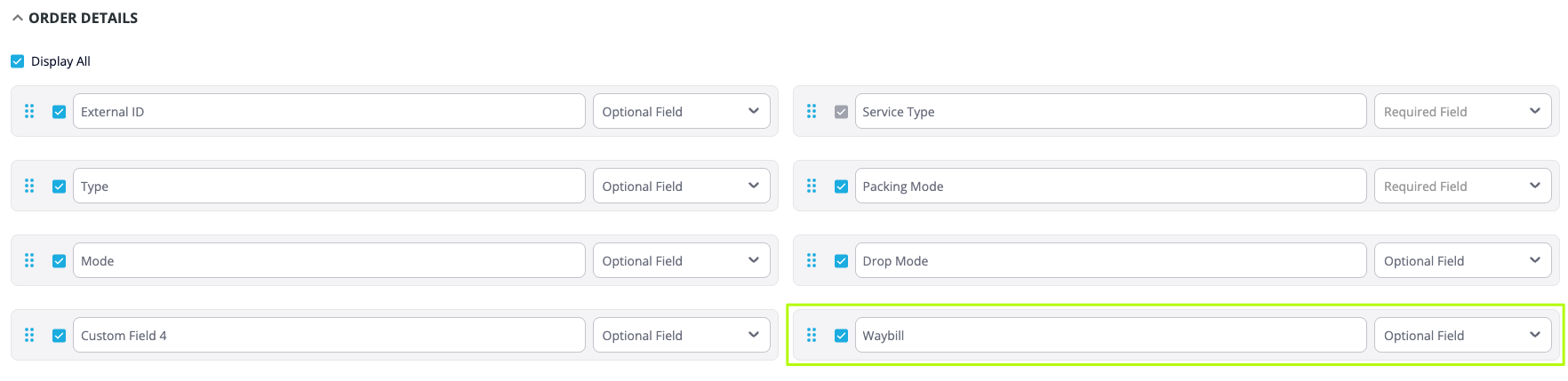 🆕 Dedicated Waybill Field